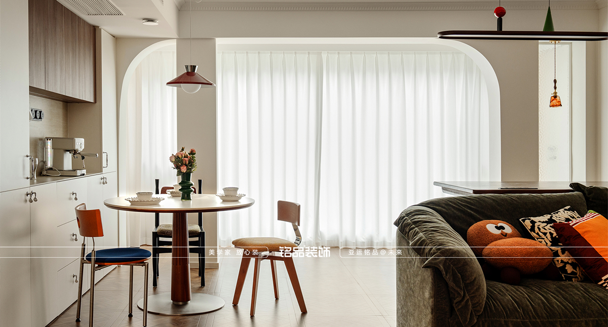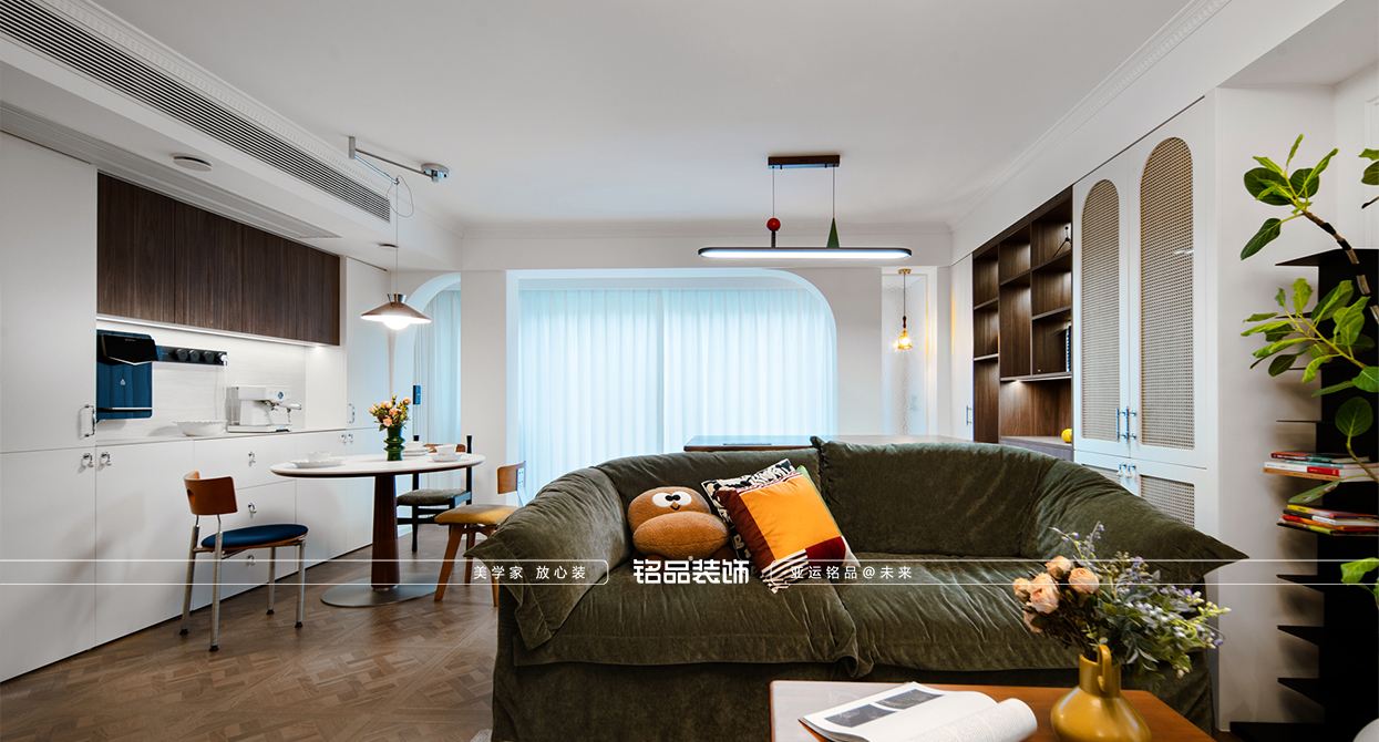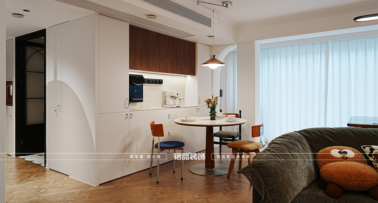 万家花园装修把空间利用率做到最大化,增加采光通透感。再小的点上做加法。增加了一些比较讨巧的小造型,每个空间的功能也都合理利用,增加一些中古的元素。