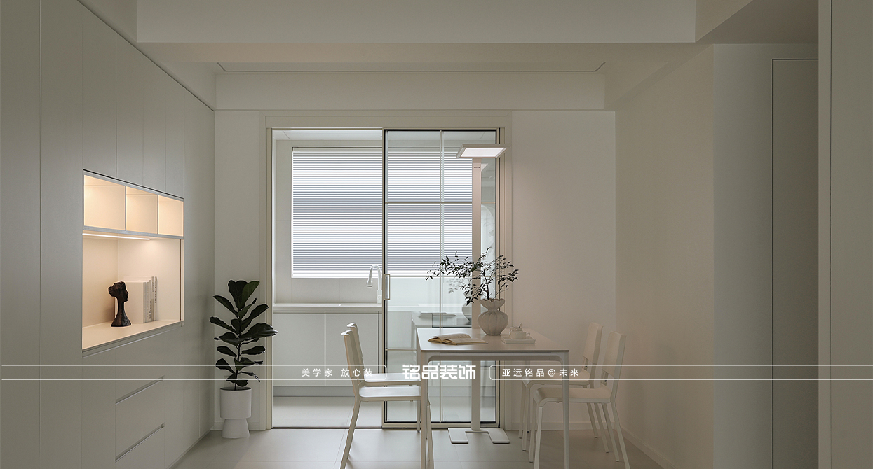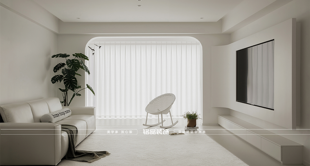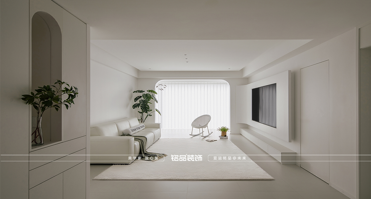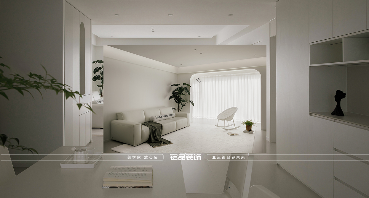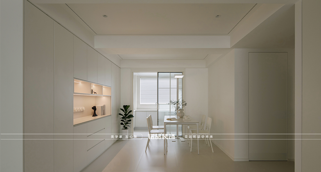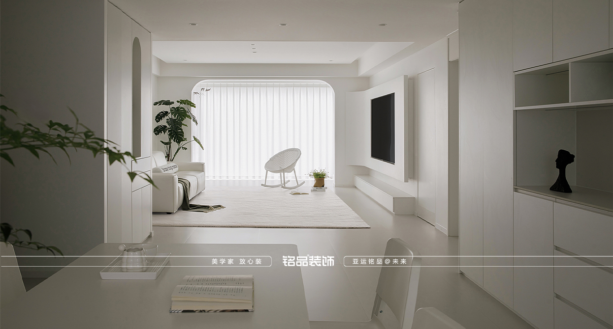 富阳祥萃万和新居装修该装修采用极简主义设计理念,以白色为主色调,追求空间的简洁、通透与纯粹,通过减少冗余装饰,营造出宁静、舒适且富有质感的居住氛围