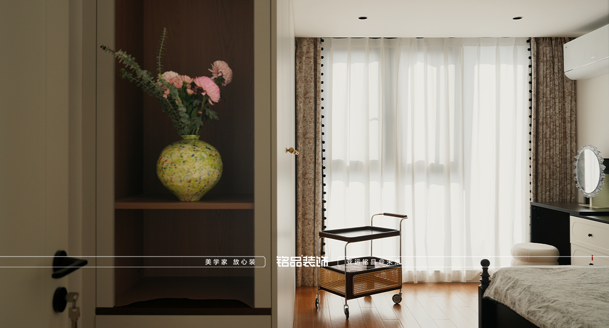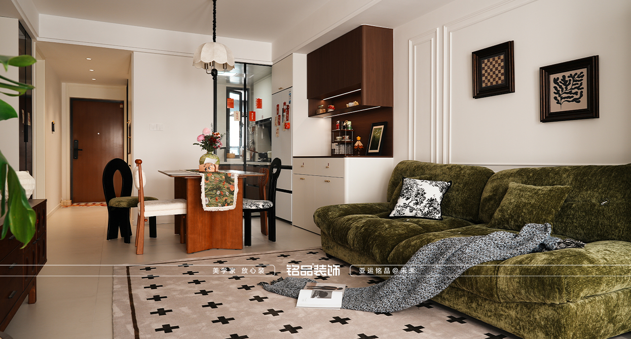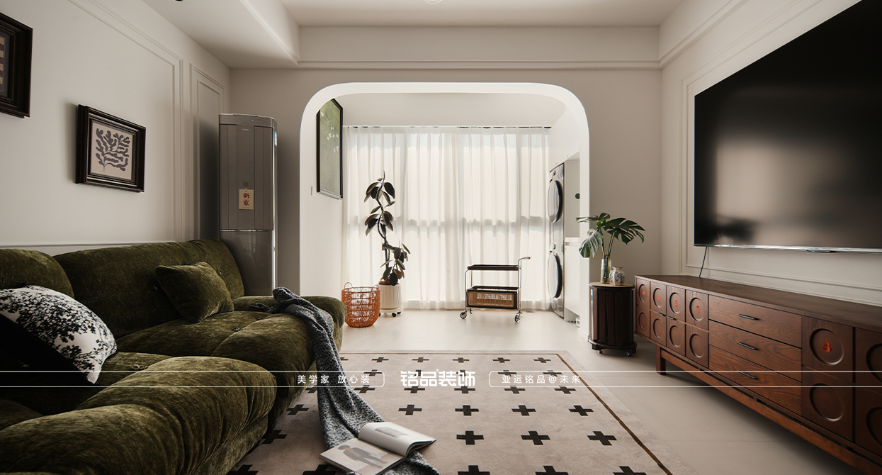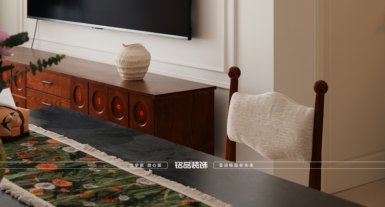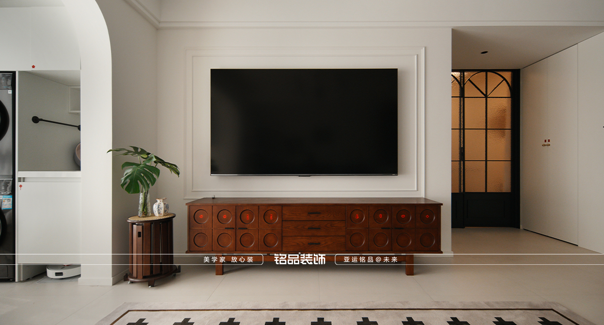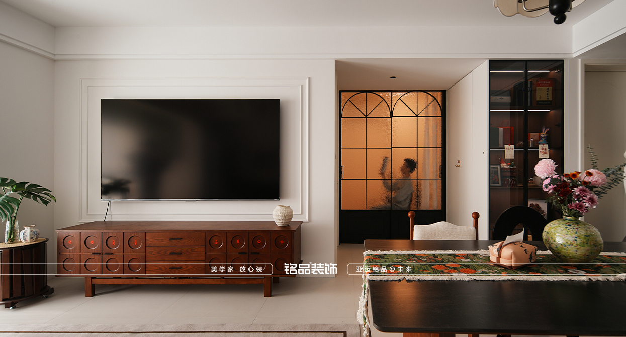 才栖名居装修用奶油色的温柔消解中古的厚重,让线条与质感共生,打造一间既有岁月温度,又不失现代舒适的家。