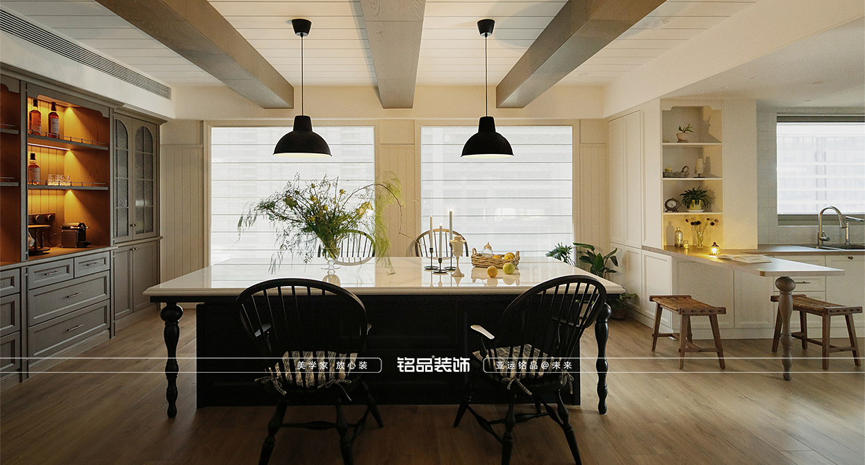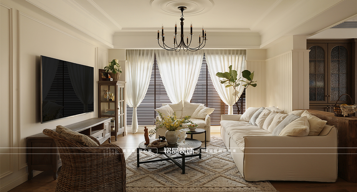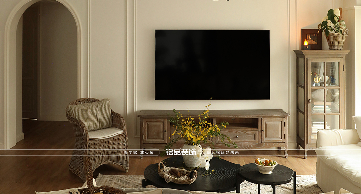 山水国际本案原本的是四房的配置,摒弃了两房改成一个大横厅的感觉,从局促的空间调整成大平层的视野感,实用自然元素,整体使空间返璞归真。 色彩:中性基调(米白、浅灰)搭配低饱和度色彩
