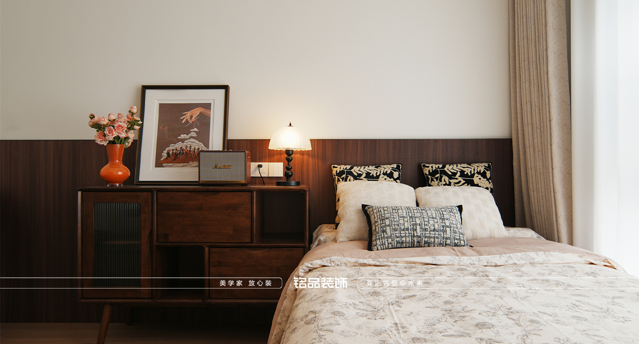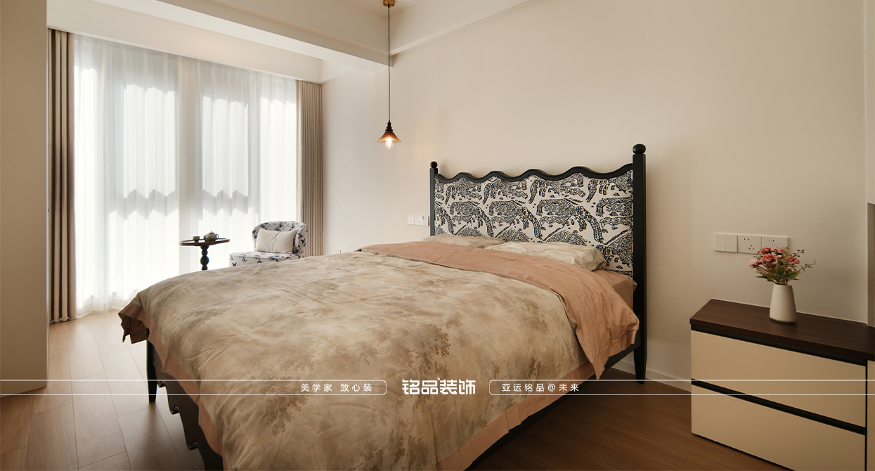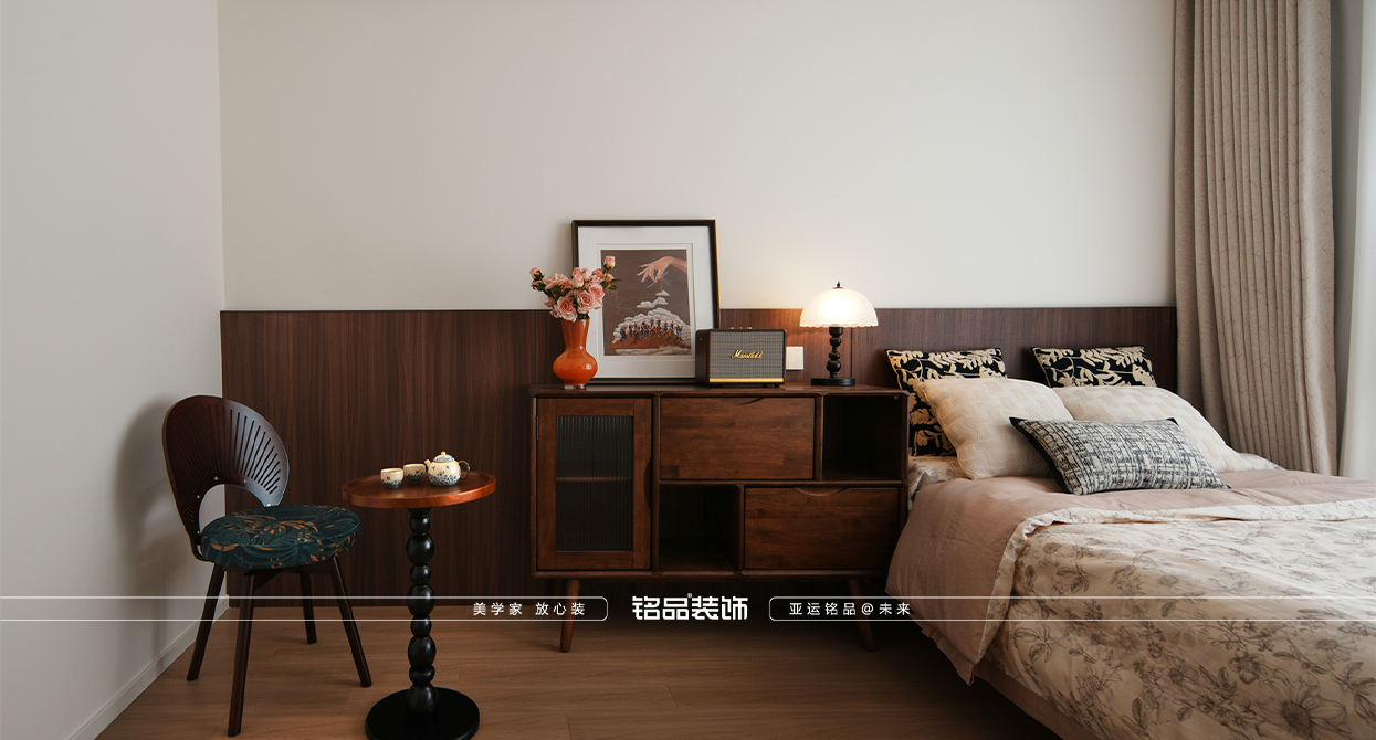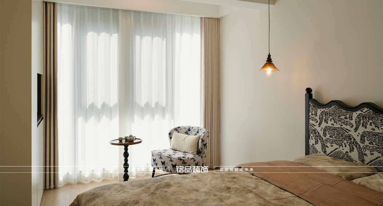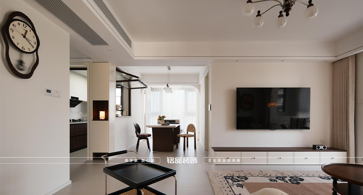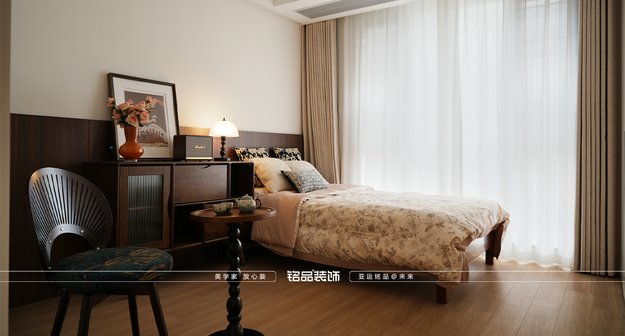 乾韵华庭这套新装修的房子以新老迭代为核心设计理念,旨在营造一个既复古又现代的居住环境。餐厅的岛台与餐桌一体化设计,不仅提升了空间的功能性,还增强了家庭成员间的互动,使得烹饪与用餐变得更加便捷和愉悦。厨房的折叠窗设计巧妙地打破了传统厨房的封闭感,增加了与家人的交流机会,也使得在厨房操作的同时能关注到家里老人的动向,确保安全。同时也让空间感得到延伸,使得整个居住空间更加通透和开放。主卧的双床设计考虑到了对老人的照顾需求,既方便了日常的护理,又保证了居住的舒适性和私密性。整体设计在满足现代生活需求的同时,也体现了对传统文化的尊重和传承。