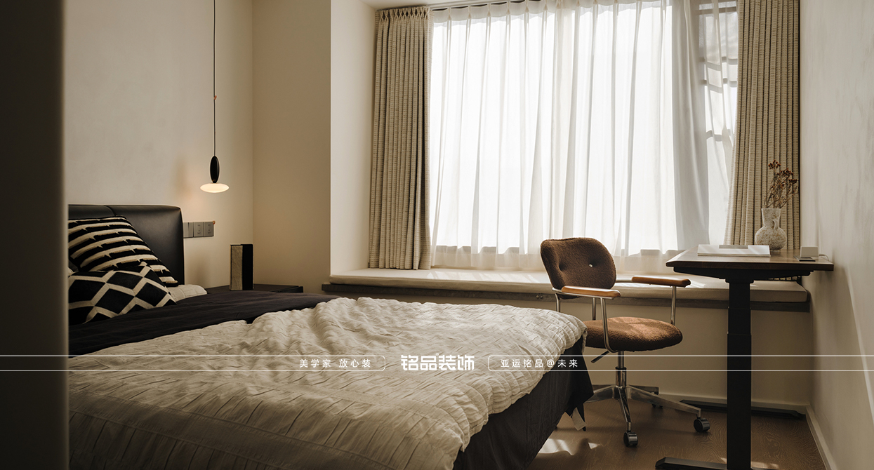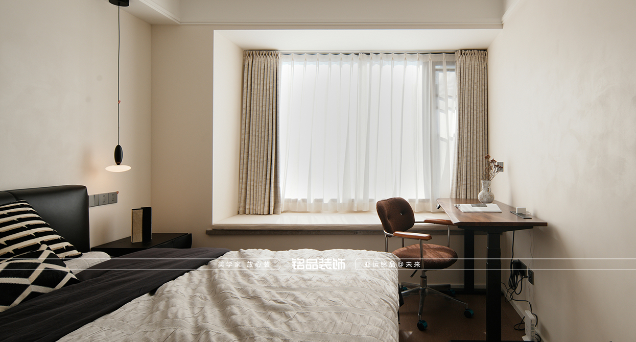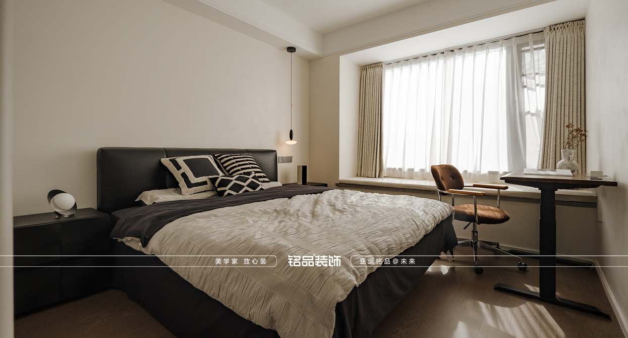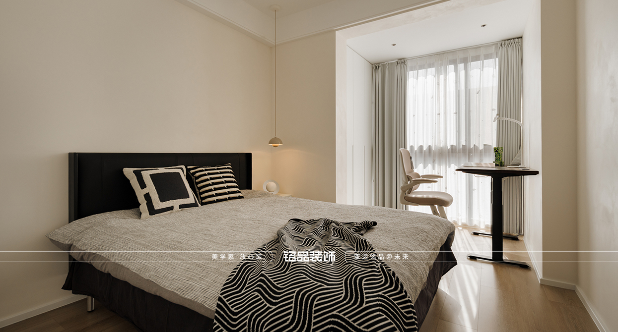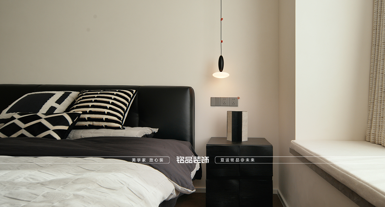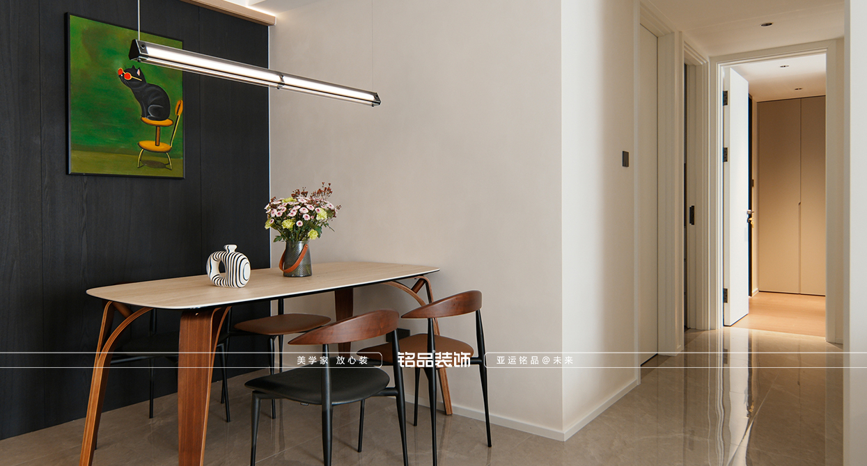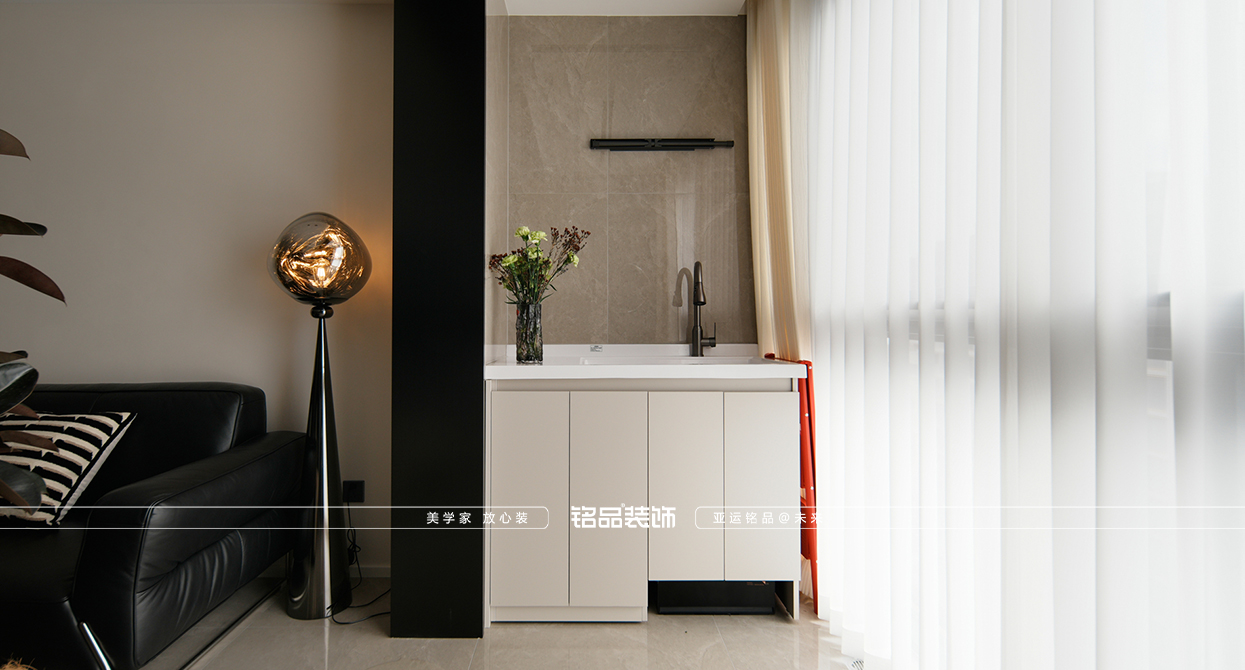 杭州拱墅区春樾星宸装修用黑白设计凸现代和永恒的特点,用黑白颜色的对比凸显空间的层次感,设计以简约和功能性为核心,将黑色主题贯彻到底。