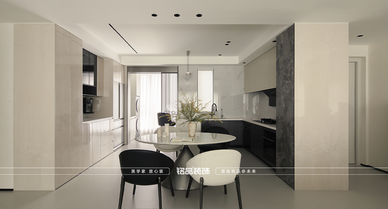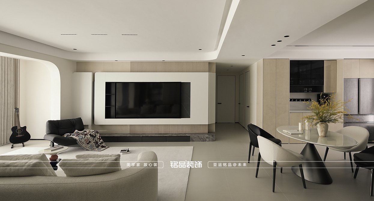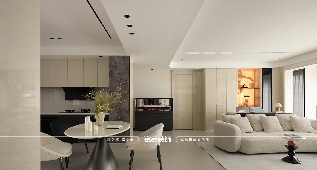临平鼎湖未来云城天禧以简洁的空间轮廓、通透的布局为基底,减少冗余造型,强调线条的流畅性,保证空间的开阔与舒适,为 “轻奢” 元素提供展示的舞台。精选少量高质感材质作为点睛之笔,而非大面积堆砌。天然大理石、柔光岩板、丝绒、真皮、实木木皮等,通过材质的碰撞提升空间精致度。