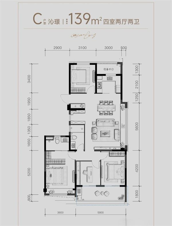 C户型/ 139㎡四室两厅两卫