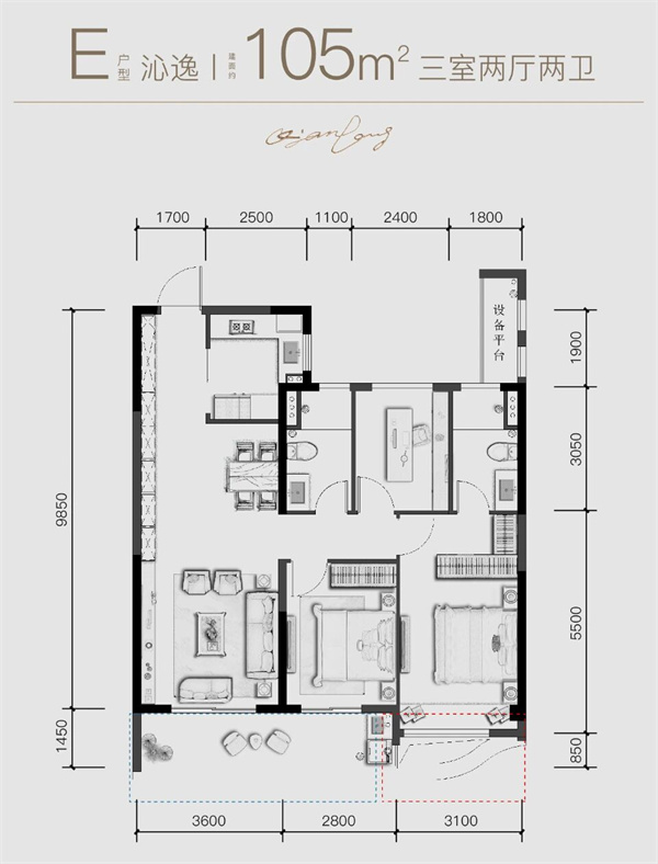 E户型/105㎡三室两厅两卫