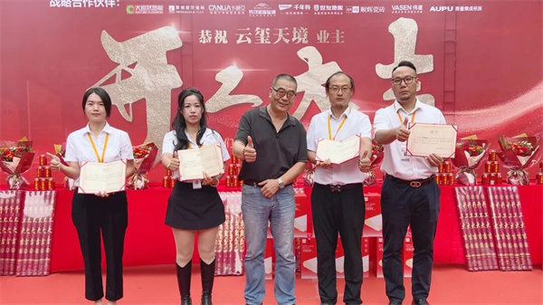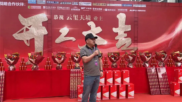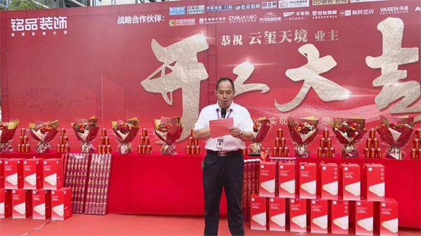 紧接着,铭品装饰南部战区营销总监潘国贤上台发言,他表示:“云玺天境业主选择铭品,是对我们的信任,这份信任我们必将珍藏。未来,我们会持续优化服务流程,加强与业主的沟通,确保每一位业主都能享受到贴心、高效的服务,让大家在装修过程中省心、放心、舒心!”