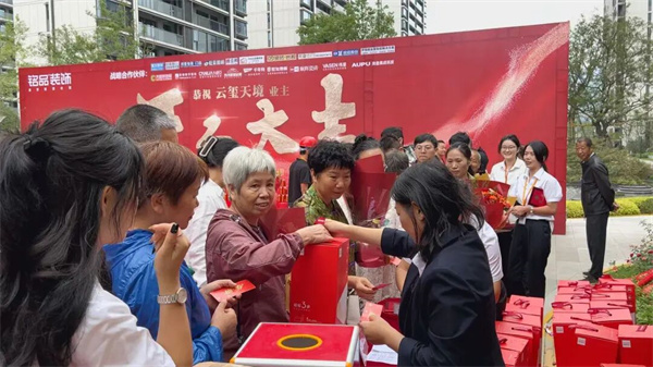 云玺天境小区入口处,一条璀璨的红色地毯绵延展开,现场鲜花缤纷,礼炮齐鸣。每一位业主的脸上都洋溢着期待与喜悦,他们不仅是新家的主人,更是铭品装饰品质服务的见证者。