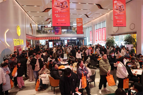 还没走进展厅,就能感受到扑面而来的热闹气息,业主们携家带口赶来,脸上满是期待;展厅内人声鼎沸,咨询声、欢笑声、金蛋碎裂的清脆声响交织在一起,汇成最动人的跨年家装交响曲。贴心的铭品早已备好暖心八宝粥、精致甜品,让业主们在畅谈理想家的同时,也能享受舌尖上的甜蜜,这份细致入微的关怀,藏着满满的诚意。